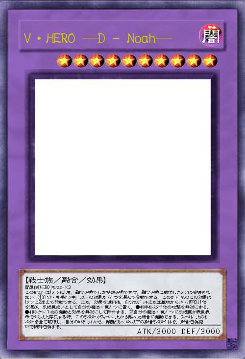 | 闇属性[HERO]モンスタ-×3 このモンスタ-は1タ-ンに1度,融合召喚でしか特殊召喚できず,融合召喚に成功したタ-ンは破壊されない.①自分・相手タ-ン中,以下の効果から1つを選んで発動できる.このカ-ド名のこの効果は1タ-ンに2度まで発動できる.また,効果を適用後,自分のデッキまたは墓地から[V・HERO]1体を選び,永続罠扱いとして自分の魔法・罠ゾ-ンに置く.●相手モンスタ-1体の攻撃を無効にする.●相手カ-ド1枚の発動と効果を無効にして除外する.②自分の魔法・罠ゾ-ンに永続罠が表側表示で3枚以上存在する時,このモンスタ-がフィ-ルド上から離れた場合に発動できる.フィ-ルド上のモンスタ-を全て破壊し,自分のEXデッキから,闇属性レベル8以下の融合モンスタ-1体を,融合召喚扱いで特殊召喚する. | |||
