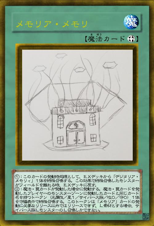 魔法・罠を発動したターンプレイヤー側に生成されるので自分がデコード出すには自分が積極的に使わないといけず、相手も利用する恐れもあるし、突然のS素材にもなるのでこれのみでは色々と不安定なカード。はたしてこの家に住むメモリさんの正体とは・・・」(2018-06-13 15:29)
