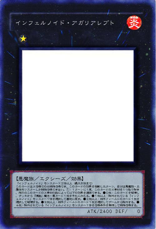 | 「インフェルノイド」モンスター×2体以上(最大5体まで) このカードはX召喚でのみ特殊召喚でき、このカードの効果を発動したターン、自分は悪魔族・炎属性モンスターしか特殊召喚できない。①:1ターンに1度、このカードのX素材を1つ取り除き、残りのこのカードのX素材の数によって以下の効果を適用できる。●0枚:このカードを破壊し、デッキから「煉獄」魔法・罠カード1枚を手札に加える。●1枚以上:除外されている「インフェルノイド」モンスター1体を選択して墓地に戻す。●2枚以上:相手フィールドのカード1枚を選択して破壊する。●3枚以上:相手フィールドのカード1枚を選択してゲームから除外する。●4枚:除外されている「インフェルノイド」モンスター1体を召喚条件を無視して特殊召喚する。 | |||