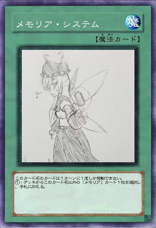 | このカード名のカードは1ターンに1度しか発動できない。 ①:デッキからこのカード名以外の「メモリア」カード1枚を選択し、手札に加える。 | |||