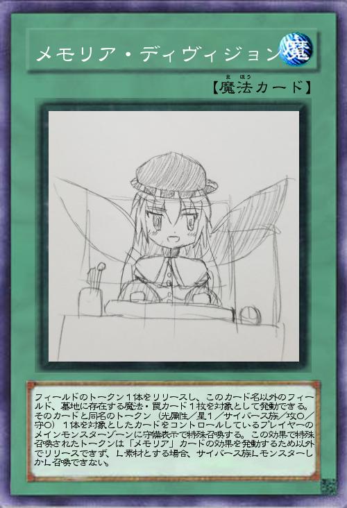 トークン1体をリリースすることで、このカードと同名以外の墓地の魔法・罠と同名のトークンが生成できる効果!そのコントローラーのフィールドに生成するため、これは相手の墓地の魔法・罠も対象に出来たりしそうですね。メモリィの効果は相手も可動範囲なので、相手の魔法・罠を利用することもできそうですなぁ。いやまぁ、フィールド魔法の時点で相手にもトークン生成させれるから利用できるけれども。制約はメモリ時の生成のトークンと同様なので、特に使い道のない魔法・罠の名を持つトークンを状況に合ったトークンに変換して、メモリィが使いやすくなるように整理したいですね。