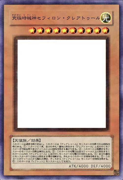 | このカードは通常召喚できない。このカードは「クレアトゥール」モンスターの効果でのみ特殊召喚できる。①:1ターンに1度、自分の手札・墓地に存在する「クレアトゥール」と名の付くモンスターを可能な限り自分フィールド上に特殊召喚する事ができる。②:このカードと戦闘するモンスターのモンスター効果は無効となる。③:このカードの攻撃力は自分フィールド上に存在するこのカード以外の「クレアトゥール」と名の付くモンスターの攻撃力の合計となる。④:自分の墓地にモンスターが10体以上存在する場合発動する。手札からこのカードを特殊召喚する。⑤:このカードがフィールドから離れた場合、デッキから「クレアトゥール」モンスターを特殊召喚する。⑥:このカードは「レフレッシ」モンスターとしても扱う。 | |||