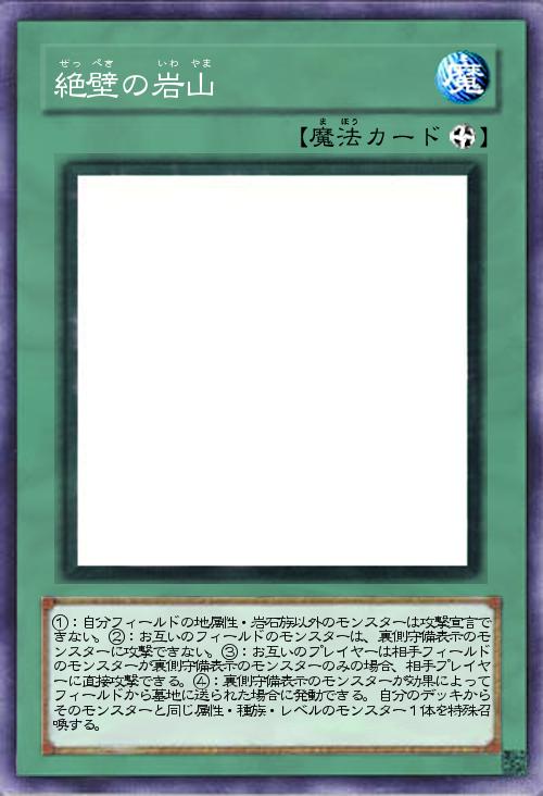 | ①:自分フィールドの地属性・岩石族以外のモンスターは攻撃宣言できない。②:お互いのフィールドのモンスターは、裏側守備表示のモンスターに攻撃できない。③:お互いのプレイヤーは相手フィールドのモンスターが裏側守備表示のモンスターのみの場合、相手プレイヤーに直接攻撃できる。④:裏側守備表示のモンスターが効果によってフィールドから墓地に送られた場合に発動できる。自分のデッキからそのモンスターと同じ属性・種族・レベルのモンスター1体を特殊召喚する。 | |||