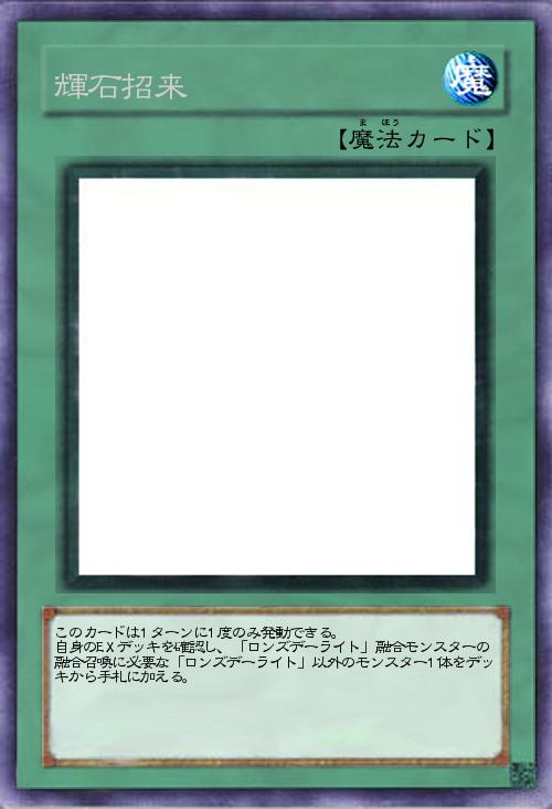 | このカードは1ターンに1度のみ発動できる。 自身のEXデッキを確認し、「ロンズデーライト」融合モンスターの融合召喚に必要な「ロンズデーライト」以外のモンスター1体をデッキから手札に加える。 | |||