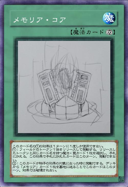 | このカード名の①の効果は1ターンに1度しか使用できない。 ①:フィールドのトークン1体をリリースして発動する。リリースしたトークンと同じカード名を持つ魔法・罠カード1枚を選択し、手札に加える。この効果で手札に加えたカードはこのターン、発動できない。 ②:このカードが相手の効果の対象になった時に発動できる。デッキから「メモリア」カード1枚を墓地に送ることでこのカードはこのターン、効果では破壊されない。 | |||