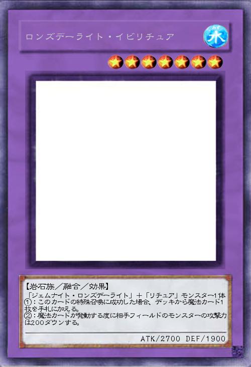 | 「ジェムナイト・ロンズデーライト」+「リチュア」モンスター1体 ①:このカードの特殊召喚に成功した場合、デッキから魔法カード1枚を手札に加える。 ②:魔法カードが発動する度に相手フィールドのモンスターの攻撃力は200ダウンする。 | |||
