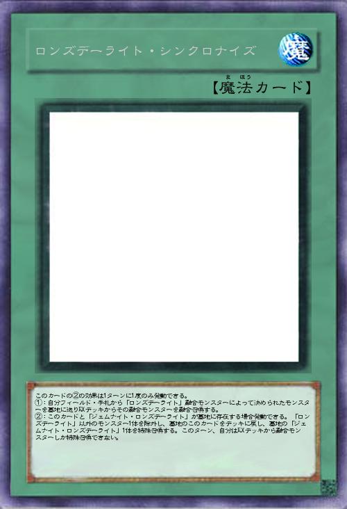 | このカードの②の効果は1ターンに1度のみ発動できる。 ①:自分フィールド・手札から「ロンズデーライト」融合モンスターによって決められたモンスターを墓地に送りEXデッキからその融合モンスターを融合召喚する。 ②:このカードと「ジェムナイト・ロンズデーライト」が墓地に存在する場合発動できる。「ロンズデーライト」以外のモンスター1体を除外し、墓地のこのカードをデッキに戻し、墓地の「ジェムナイト・ロンズデーライト」1体を特殊召喚する。このターン、自分はEXデッキから融合モンスターしか特殊召喚できない。 | |||