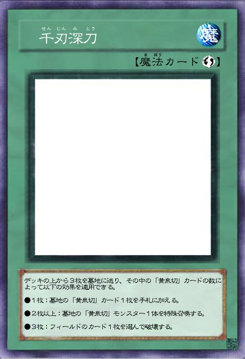不確定の墓地肥やしを行い、その中の黄泉切の数で変化する効果を持ちます。1枚でサルベージ、2枚で蘇生です。3枚なら蘇生に加えて除去が使えます。注意すべきは、このカードを含め、黄泉切に関する魔法罠は「黄泉切」カードではない点。カテゴリで固めても3枚確定とはいきません。」(2018-07-03 19:38)