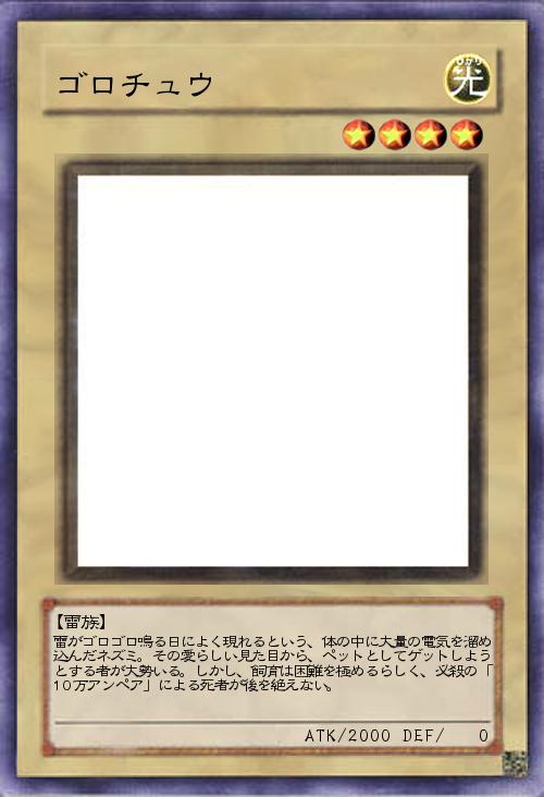 | 雷がゴロゴロ鳴る日によく現れるという、体の中に大量の電気を溜め込んだネズミ。その愛らしい見た目から、ペットとしてゲットしようとする者が大勢いる。しかし、飼育は困難を極めるらしく、必殺の「10万アンペア」による死者が後を絶えない。 | |||
