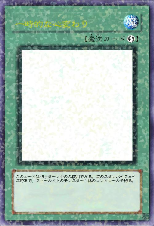 | このカードは相手ターン中のみ使用できる。次のスタンバイフェイズ時まで、フィールド上のモンスター1体のコントロールを得る。 | |||