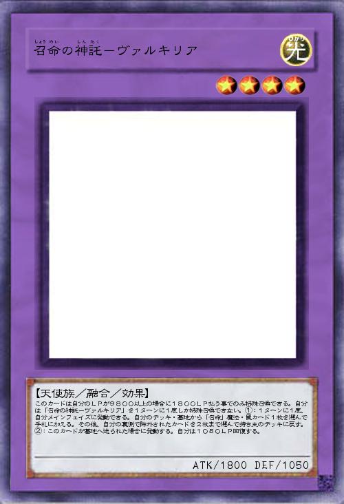 | このカードは自分のLPが9800以上の場合に1800LP払う事でのみ特殊召喚できる。自分は「召命の神託-ヴァルキリア」を1ターンに1度しか特殊召喚できない。①:1ターンに1度、自分メインフェイズに発動できる。自分のデッキ・墓地から「召命」魔法・罠カード1枚を選んで手札に加える。その後、自分の裏側で除外されたカードを2枚まで選んで持ち主のデッキに戻す。②:このカードが墓地へ送られた場合に発動する。自分は1050LP回復する。 | |||