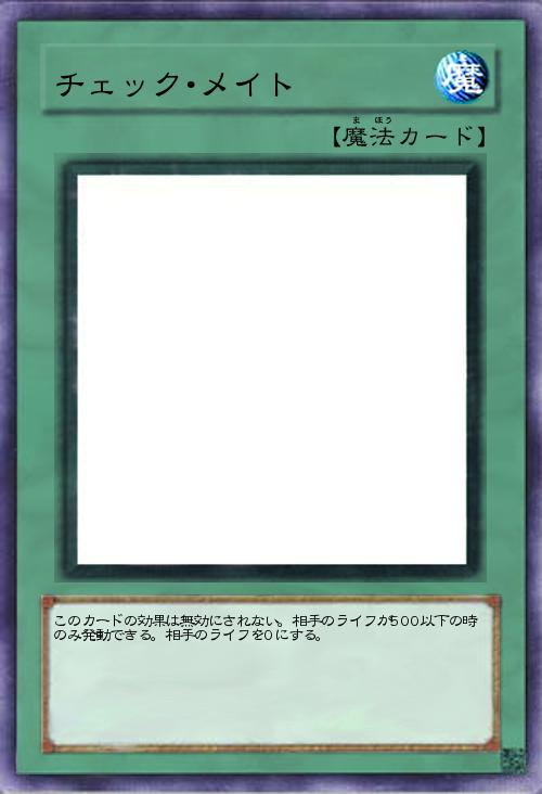 | このカードの効果は無効にされない。相手のライフが500以下の時のみ発動できる。相手のライフを0にする。 | |||