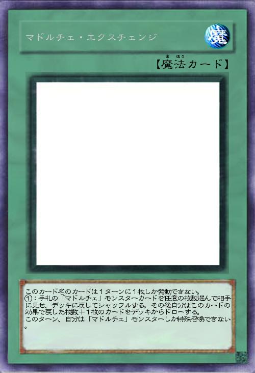 | このカード名のカードは1ターンに1枚しか発動できない。 ①:手札の「マドルチェ」モンスターカードを任意の枚数選んで相手に見せ、デッキに戻してシャッフルする。その後自分はこのカードの効果で戻した枚数+1枚のカードをデッキからドローする。 このターン、自分は「マドルチェ」モンスターしか特殊召喚できない。 | |||