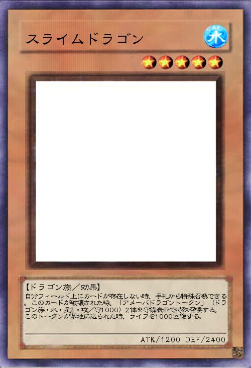 | 自分フィールド上にカードが存在しない時、手札から特殊召喚できる。このカードが破壊された時、「アメーバドラゴントークン」(ドラゴン族・水・星2・攻/守1000)2体を守備表示で特殊召喚する。このトークンが墓地に送られた時、ライフを1000回復する。 | |||