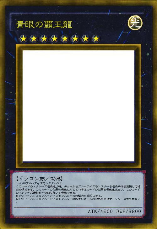 | レベル8ブルーアイズモンスター×2 このカードのエクシーズ召喚成功時、デッキからブルーアイズモンスターを召喚条件を無視して特殊召喚できる。このカードの効果の発動に対して相手はカードの効果を発動出来ない。このカードのエクシーズ素材を一つ取り除いて発動できる。 自分フィールド上のブルーアイズモンスターの攻撃力を4500にする。 自分フィールド上のブルーアイズモンスターは相手のカードの効果を受けず、リリースもできない。 | |||