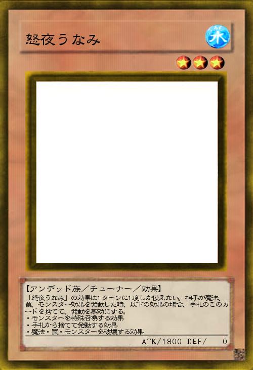 | 「怒夜うなみ」の効果は1ターンに1度しか使えない。相手が魔法、罠、モンスター効果を発動した時、以下の効果の場合、手札のこのカードを捨てて、発動を無効にする。 ・モンスターを特殊召喚する効果 ・手札から捨てて発動する効果 ・魔法・罠・モンスターを破壊する効果 | |||