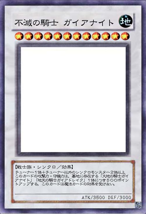 チューナー1体+チューナー以外のシンクロモンスター2体以上 このカードの攻撃力・守備力は、墓地に存在する「大地の騎士ガイアナイト」「地天の騎士ガイアドレイク」1体につき500ポイントアップする。このカードは魔法カードの効果を受けない。 |