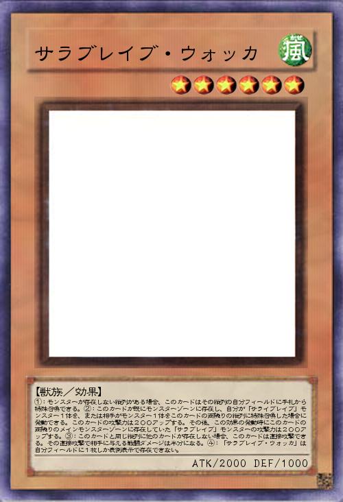 | ①:モンスターが存在しない縦列がある場合、このカードはその縦列の自分フィールドに手札から特殊召喚できる。②:このカードが既にモンスターゾーンに存在し、自分が「サライブレイブ」モンスター1体を、または相手がモンスター1体をこのカードの両隣りの縦列に特殊召喚した場合に発動できる。このカードの攻撃力は200アップする。その後、この効果の発動時にこのカードの両隣りのメインモンスターゾーンに存在していた「サラブレイブ」モンスターの攻撃力は200アップする。③:このカードと同じ縦列に他のカードが存在しない場合、このカードは直接攻撃できる。その直接攻撃で相手に与える戦闘ダメージは半分になる。④:「サラブレイブ・ウォッカ」は自分フィールドに1枚しか表側表示で存在できない。 | |||