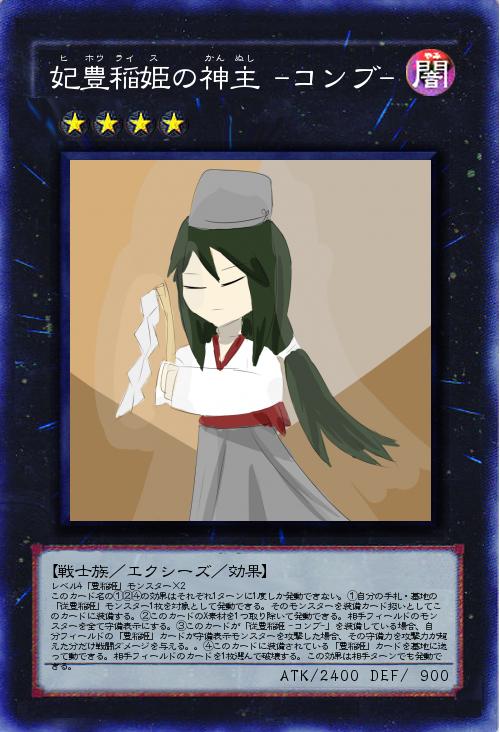 | レベル4「豊稲姫」モンスター×2 このカード名の①②④の効果はそれぞれ1ターンに1度しか発動できない。①自分の手札・墓地の 「従豊稲姫」モンスター1枚を対象として発動できる。そのモンスターを装備カード扱いとしてこのカードに装備する。②このカードのX素材を1つ取り除いて発動できる。相手フィールドのモンスターを全て守備表示にする。③このカードが「従豊稲姫 -コンブ-」を装備している場合、自分フィールドの「豊稲姫」カードが守備表示モンスターを攻撃した場合、その守備力を攻撃力が超えた分だけ戦闘ダメージを与える。。④このカードに装備されている「豊稲姫」カードを墓地に送って動できる。相手フィールドのカードを1枚選んで破壊する。この効果は相手ターンでも発動できる。 | |||