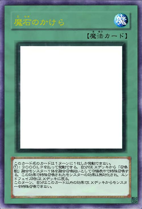 | このカード名のカードは1ターンに1枚しか発動できない。 ①:3000LPを払って発動できる。自分のEⅩデッキから「召喚獣」融合モンスター1体を融合召喚扱いとして守備表示で特殊召喚する。この効果で特殊召喚されたモンスターの効果は無効化され、エンドフェイズ時にEⅩデッキに戻る。 このターン、自分はこのカード以外の効果でEⅩデッキからモンスターを特殊召喚できない。 | |||