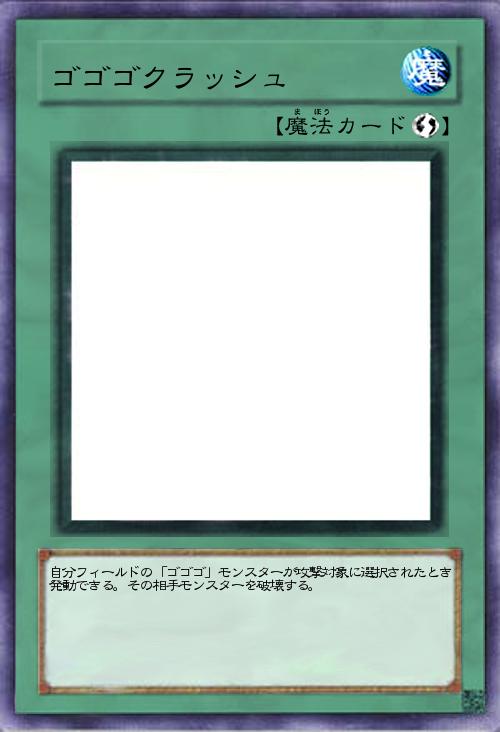 | 自分フィールドの「ゴゴゴ」モンスターが攻撃対象に選択されたとき発動できる。その相手モンスターを破壊する。 | |||