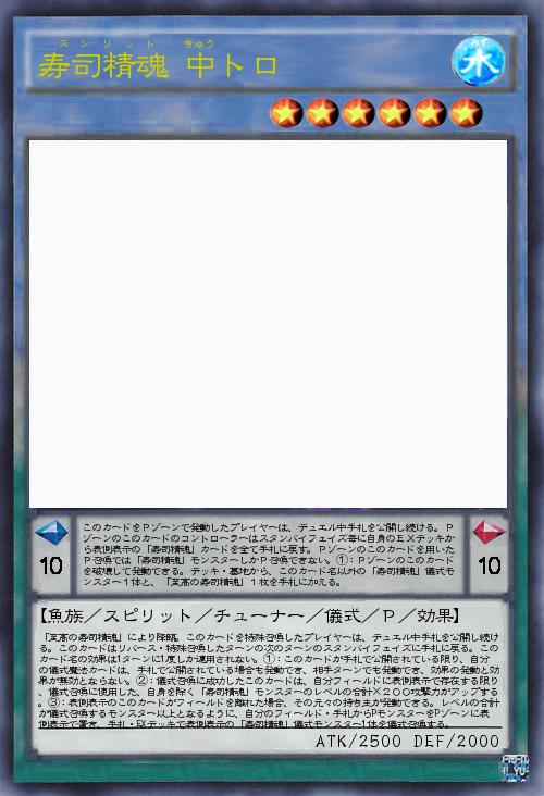 | 【魚族/スピリット/チューナー/儀式/P/効果】 | 寿司精魂 | ||