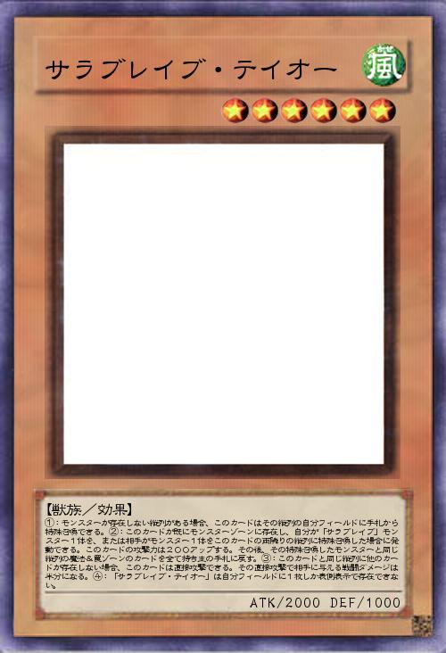 | ①:モンスターが存在しない縦列がある場合、このカードはその縦列の自分フィールドに手札から特殊召喚できる。②:このカードが既にモンスターゾーンに存在し、自分が「サラブレイブ」モンスター1体を、または相手がモンスター1体をこのカードの両隣りの縦列に特殊召喚した場合に発動できる。このカードの攻撃力は200アップする。その後、その特殊召喚したモンスターと同じ縦列の魔法&罠ゾーンのカードを全て持ち主の手札に戻す。③:このカードと同じ縦列に他のカードが存在しない場合、このカードは直接攻撃できる。その直接攻撃で相手に与える戦闘ダメージは半分になる。④:「サラブレイブ・テイオー」は自分フィールドに1枚しか表側表示で存在できない。 | |||