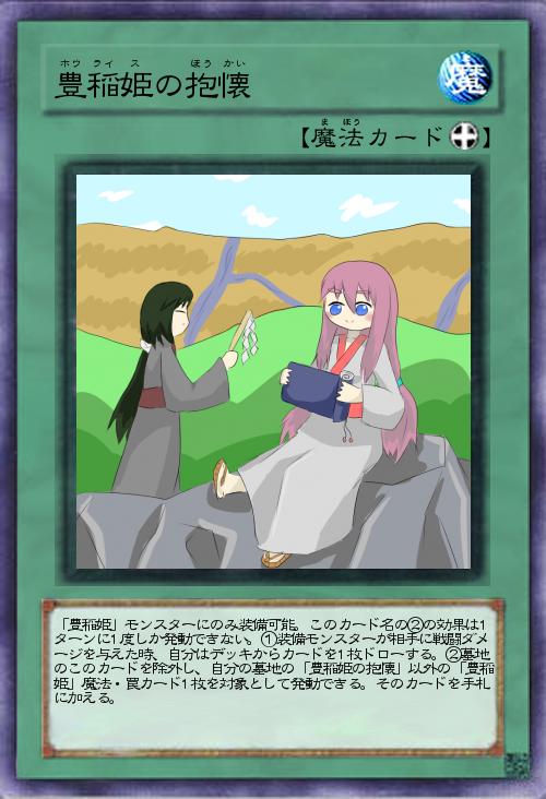 | 「豊稲姫」モンスターにのみ装備可能。このカード名の②の効果は1ターンに1度しか発動できない。①装備モンスターが相手に戦闘ダメージを与えた場合、自分はデッキからカードを1枚ドローする。②墓地のこのカードを除外し、自分の墓地の「豊稲姫の抱懐」以外の「豊稲姫」魔法・罠カード1枚を対象として発動できる。そのカードを手札に加える。 | |||