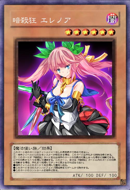 | このカード名のカードはフィールドに1枚しか表側表示で存在できない。 ①:相手フィールドにのみモンスターが存在する場合、このカードは手札から特殊召喚できる。 ②:このカードが「暗殺狂」カードまたは相手のカードの効果の対象となった場合に発動できる。以下の効果から1つを選んで適用する。このターン、自分は「暗殺狂」カード以外のカードの効果を発動する場合、手札を1枚選んでデッキに戻さなければならない。 ●相手フィールドのカード1枚を選んで墓地へ送る。 ●このカードを次のスタンバイフェイズ開始時までゲームから除外する。 ●このカードのコントロールを相手に移す。 | |||