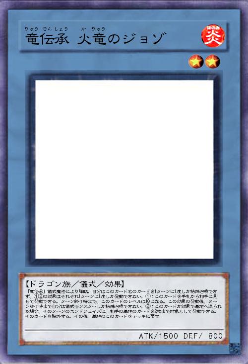 | 「竜伝承」儀式魔法により降臨。自分はこのカード名のカードを1ターンに1度しか特殊召喚できず、①②の効果はそれぞれ1ターンに1度しか発動できない。①:このカードを手札から相手に見せて発動できる。ターン終了時まで、このカードのレベルは10になる。この効果の発動後、ターン終了時まで自分は儀式モンスターしか特殊召喚できない。②:このカードが効果で墓地へ送られた場合、そのターンのエンドフェイズに、相手の墓地のカードを2枚まで対象として発動できる。そのカードを除外する。その後、墓地のこのカードをデッキに戻す。 | |||