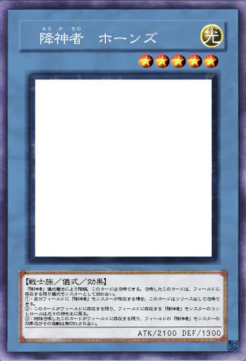 | 「降神者」儀式魔法により降臨。このカードは召喚できる。召喚したこのカードは、フィールドに存在する限り儀式モンスターとして扱わない。 ①:自分フィールドに「降神者」モンスターが存在する場合、このカードはリリースなしで召喚できる。 ②:このカードがフィールドに存在する限り、フィールドに存在する「降神者」モンスターのコントロールは元々の持ち主に戻る。 ③:特殊召喚したこのカードがフィールドに存在する限り、フィールドの「降神者」モンスターの効果及びその発動は無効化されない。 | |||