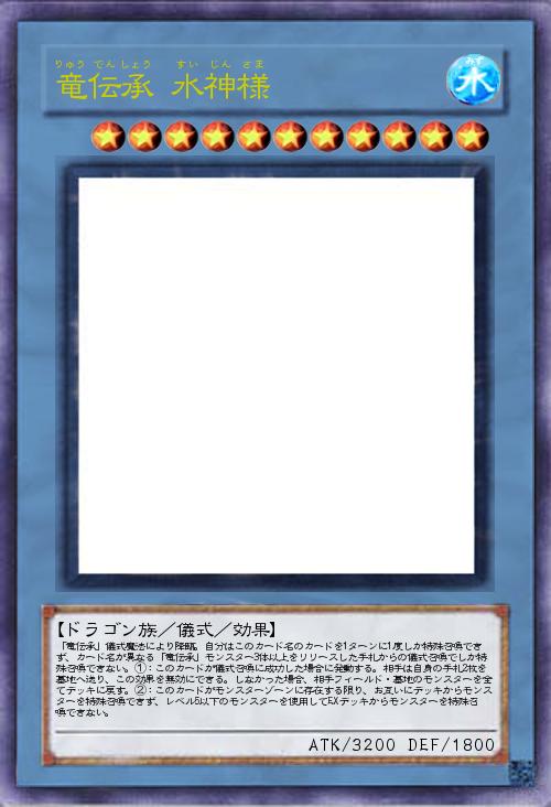 | 「竜伝承」儀式魔法により降臨。自分はこのカード名のカードを1ターンに1度しか特殊召喚できず、カード名が異なる「竜伝承」モンスター3体以上をリリースした手札からの儀式召喚でしか特殊召喚できない。①:このカードが儀式召喚に成功した場合に発動する。相手は自身の手札2枚を墓地へ送り、この効果を無効にできる。しなかった場合、相手フィールド・墓地のモンスターを全てデッキに戻す。②:このカードがモンスターゾーンに存在する限り、お互いにデッキからモンスターを特殊召喚できず、レベル5以下のモンスターを使用してEXデッキからモンスターを特殊召喚できない。 | |||