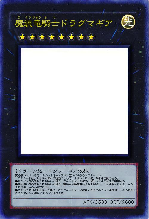 魔法使いレベル8モンスター1体+ドラゴン族レベル8モンスター1体 このカードは、取り除く素材の種類によって、1ターンに1度、効果を発動できる。 ●ドラゴン族の素材を取り除いた場合、フィールド上の魔法・罠カードを2枚まで破壊する。 ●魔法使い族の素材を取り除いた場合、墓地から通常魔法2枚を選択し、1枚を手札に加え、もう1枚をデッキの一番下に戻す。 ●その他の素材を取り除いた場合、自分フィールド上に存在する全てのカードを破壊し、その枚数×500ポイント相手にダメージを与える。 |