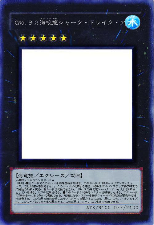 | 水属性レベル5モンスター×4 「RUM」魔法カードでこのカードを特殊召喚する場合、このカードは「RUM-バリアンズ・フォース」でしか特殊召喚できない。このカードが攻撃する場合、相手はダメージステップ終了時まで門巣他の効果・魔法・罠カードを発動できない。「No.32海咬龍シャーク・ドレイク」をX素材としている場合、以下の効果を得る。●このカードが相手モンスターを破壊した場合、このカードのX素材を一つ取り除いて発動できる。破壊したモンスターを相手フィールドに表側攻撃表示で特殊召喚する。この効果で特殊召喚したモンスターの攻撃力は0になる。更に、このバトルフェイズ中、このカードはもう一度攻撃できる。この効果は1ターンに二度まで使用できる。 | |||