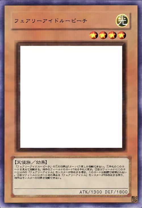 | 「フェアリーアイドルーピーチ」の①の効果は1ターンに1度しか発動できない。①手札のこのカードを見せて発動する。相手のフィールドのカード1枚を手札に戻す。②自分フィールドにこのカード以外の「フェアリーアイドル」モンスターが存在する場合、このカードは戦闘で破壊されない。③自分フィールドにカード名の異なる「フェアリーアイドル」モンスターが5体存在する限り、相手はモンスターの効果を発動できない。 | |||