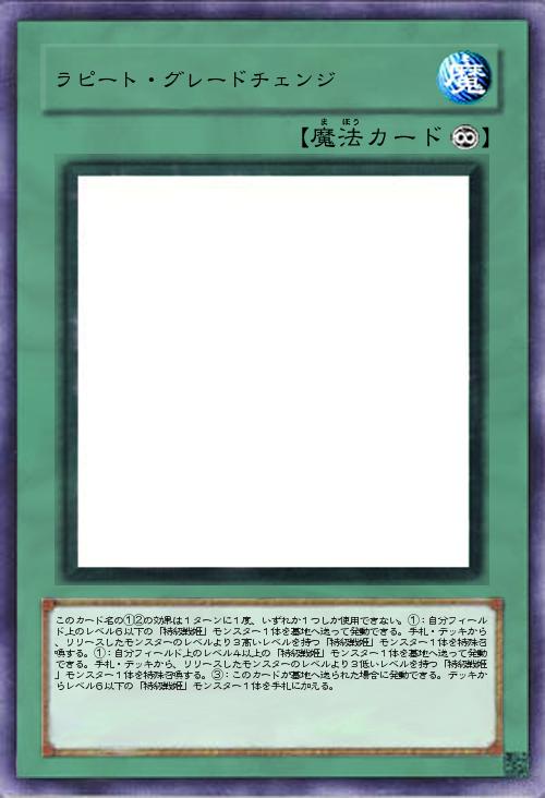「「特級戦姫」シリーズのサポート役となる魔法・罠カード群、「ラピート」シリーズ第1弾です。①の効果で「格上げ」、②の効果で「格下げ」を表してみました。ただし1ターンにどっちか1度の制限付き。」(2018-08-06 02:18)