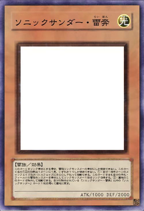 このカードは共通効果に加えて、②で墓地から除外する事で、除外された同名以外の「ソニックサンダー」を墓地に戻す効果を持ちます。」(2018-08-08 02:29)