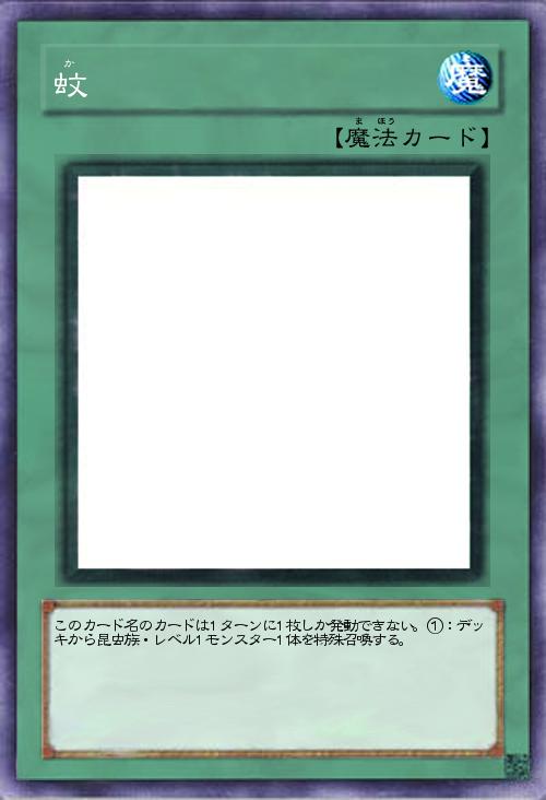 | このカード名のカードは1ターンに1枚しか発動できない。①:デッキから昆虫族・レベル1モンスター1体を特殊召喚する。 | |||