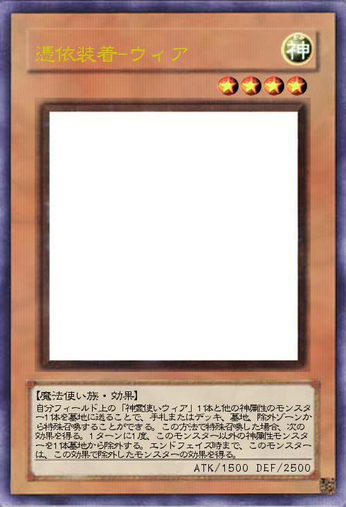 | 自分フィールド上の「神霊使いウィア」1体と他の神属性のモンスター1体を墓地に送ることで、手札またはデッキ、墓地、除外ゾーンから特殊召喚することができる。この方法で特殊召喚した場合、次の効果を得る。1ターンに1度、このモンスター以外の神属性モンスターを1体墓地から除外する。エンドフェイズ時まで、このモンスターは、この効果で除外したモンスターの効果を得る。 | |||