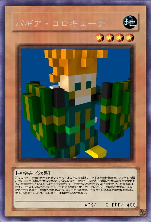 | ①このカードが表側表示で自分フィールド上に存在する限り、相手は他の植物族モンスターを攻撃、モンスター効果の対象にできない。②このカードがカードの効果、攻撃の対象になった時発動する。自分のデッキの上からカードを2枚捨てて、その中の植物族モンスターの数だけ、自分または相手フィールド上にパギアシードトークン(植物族・地・星1・攻0/守0)を特殊召喚する。この効果で捨てたカードが2枚とも植物族モンスターだった場合、そのカード効果または攻撃を無効にする。③1ターンに1度、このカードは戦闘で破壊されない。 | |||