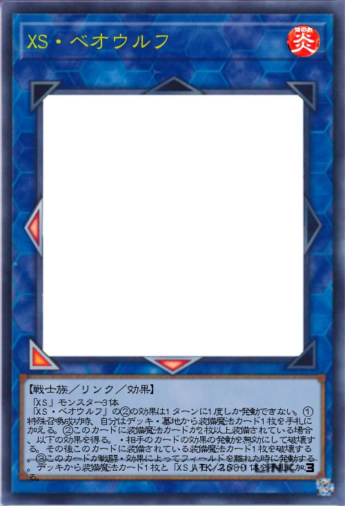 | 「XS」モンスター3体 「XS・ベオウルフ」の②の効果は1ターンに1度しか発動できない。①特殊召喚成功時、自分はデッキ・墓地から装備魔法カード1枚を手札に加える。②このカードに装備魔法カードが2枚以上装備されている場合、以下の効果を得る。・相手のカードの効果の発動を無効にして破壊する。その後このカードに装備されている装備魔法カード1枚を破壊する。③このカードが戦闘・効果によってフィールドを離れた時に発動する。デッキから装備魔法カード1枚と「XS」モンスター1体を手札に加える。 | |||