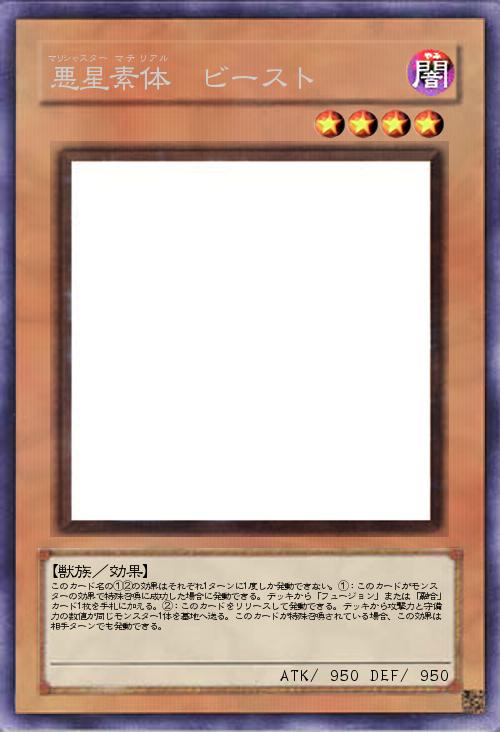 | このカード名の①②の効果はそれぞれ1ターンに1度しか発動できない。①:このカードがモンスターの効果で特殊召喚に成功した場合に発動できる。デッキから「フュージョン」または「融合」カード1枚を手札に加える。②:このカードをリリースして発動できる。デッキから攻撃力と守備力の数値が同じモンスター1体を墓地へ送る。このカードが特殊召喚されている場合、この効果は相手ターンでも発動できる。 | |||