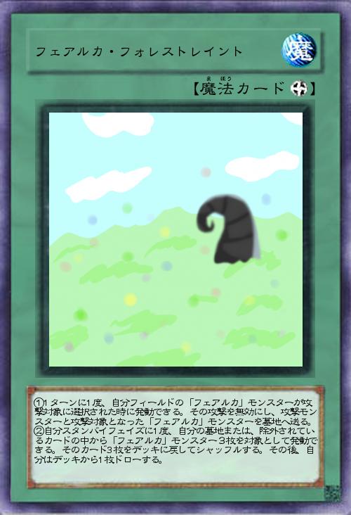 | ①1ターンに1度、自分フィールドの「フェアルカ」モンスターが攻撃対象に選択された時に発動できる。その攻撃を無効にし、攻撃モンスターと攻撃対象となった「フェアルカ」モンスターを墓地へ送る。②自分スタンバイフェイズに1度、自分の墓地または、除外されているカードの中から「フェアルカ」モンスター3枚を対象として発動できる。そのカード3枚をデッキに戻してシャッフルする。その後、自分はデッキから1枚ドローする。 | |||