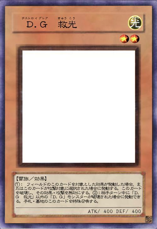 | ①: フィールドのこのカードを対象とした効果が発動した場合、またはこのカードが攻撃対象に選択された場合に発動する。このカードを破壊し、その効果・攻撃を無効にする。②:相手ターン中に「D.G 救光」以外の「D.G」モンスターが破壊された場合に発動できる。手札・墓地のこのカードを特殊召喚する。 | |||