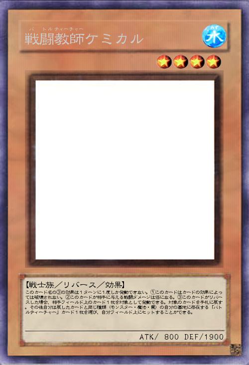 | このカード名の③の効果は1ターンに1度しか発動できない。①このカードはカードの効果によっては破壊されない。②このカードが相手に与える戦闘ダメージは倍になる。③このカードがリバースした場合、相手フィールド上のカード1枚を対象として発動できる。対象のカードを手札に戻す。その後自分は戻したカードと同じ種類(モンスター・魔法・罠)の自分の墓地に存在する「バトルティーチャー」カード1枚を選び、自分フィールド上にセットすることができる。 | |||