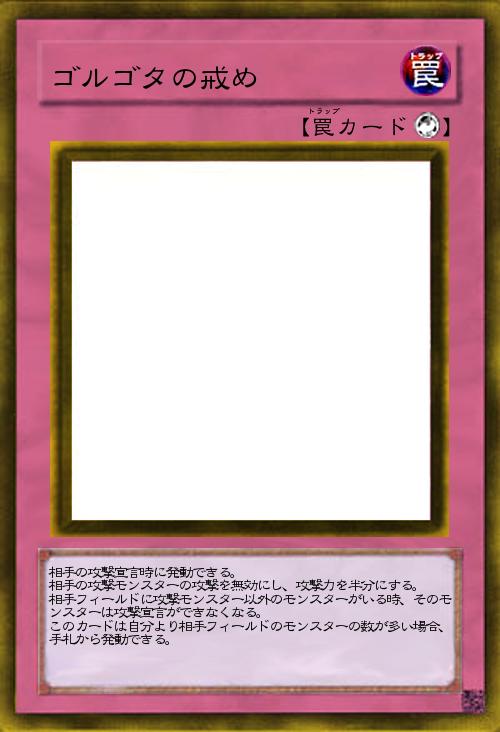 | 相手の攻撃宣言時に発動できる。 相手の攻撃モンスターの攻撃を無効にし、攻撃力を半分にする。 相手フィールドに攻撃モンスター以外のモンスターがいる時、そのモンスターは攻撃宣言ができなくなる。 このカードは自分より相手フィールドのモンスターの数が多い場合、手札から発動できる。 | |||