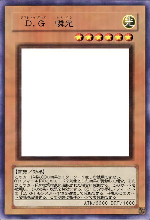 D.Gの破壊時効果を能動的に使うことができるカード。ステータス自体は剛光と大差ないので、主にそれ目的で使用されそうです。相手ターンでも使用できるので、対象にとらない除外やバウンスなどから必要なカードを逃がすのにも使えそうです。」(2018-08-19 20:09)