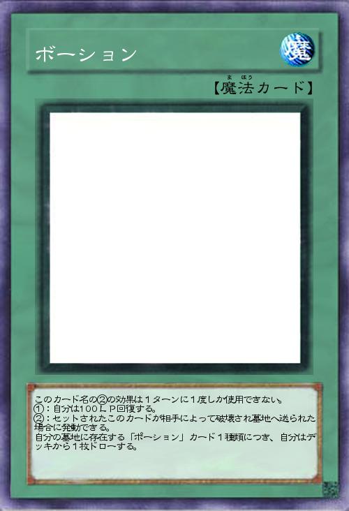 | このカード名の②の効果は1ターンに1度しか使用できない。 ①:自分は100LP回復する。 ②:セットされたこのカードが相手によって破壊され墓地へ送られた場合に発動できる。 自分の墓地に存在する「ポーション」カード1種類につき、自分はデッキから1枚ドローする。 | |||
