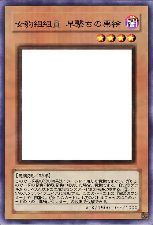 | このカード名の①の効果は1ターンに1度しか発動できない。①:このカードの召喚・特殊召喚に成功した場合、発動できる。自分のデッキからレベル4以下の悪魔族モンスター1体を特殊召喚する。②:自分のスタンバイフェイズに発動する。このカードの上に「業績カウンター」を1個置く。③:このカードは1度のバトルフェイズにこのカードの上の「業績カウンター」の数まで攻撃できる。 | |||