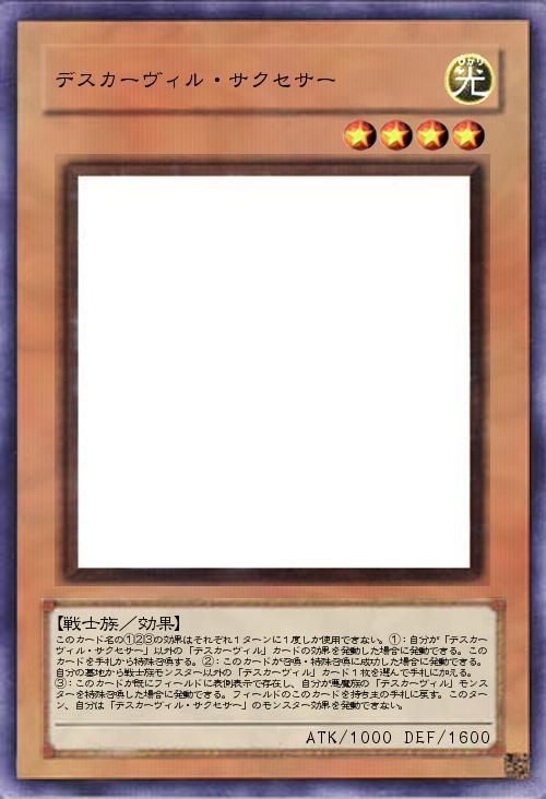 | このカード名の①②③の効果はそれぞれ1ターンに1度しか使用できない。①:自分が「デスカーヴィル・サクセサー」以外の「デスカーヴィル」カードの効果を発動した場合に発動できる。このカードを手札から特殊召喚する。②:このカードが召喚・特殊召喚に成功した場合に発動できる。自分の墓地から戦士族モンスター以外の「デスカーヴィル」カード1枚を選んで手札に加える。 ③:このカードが既にフィールドに表側表示で存在し、自分が悪魔族の「デスカーヴィル」モンスターを特殊召喚した場合に発動できる。フィールドのこのカードを持ち主の手札に戻す。このターン、自分は「デスカーヴィル・サクセサー」のモンスター効果を発動できない。 | |||